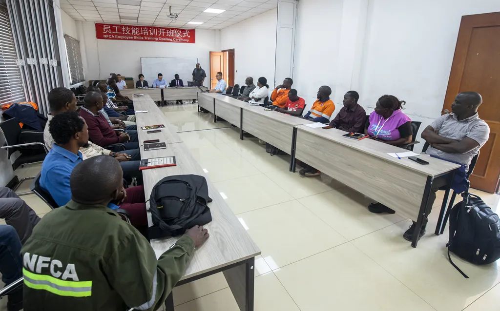 ??開班儀式于中午12點(diǎn)20分正式開始,參會人員包括中色非礦副總經(jīng)理徐來祥、贊方總經(jīng)理助理Dean Mwelwa以及首批參加培訓(xùn)的電工20人,以及中贊職院負(fù)責(zé)人和授課講師。