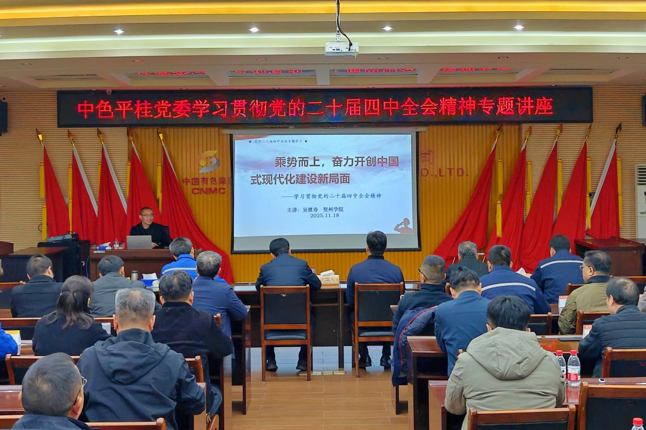 為深入學習貫徹黨的二十屆四中全會精神,11月18日,中色平桂黨委舉辦學習貫徹黨的二十屆四中全會精神專題講座,邀請賀州學院馬克思主義學院教授、自治區(qū)“雙進”教育宣講團成員、賀州市委“二十屆四中全會精神學習”“習近平談治國理政第五卷精神學習”宣講團成員吳繼壽作專題宣講。