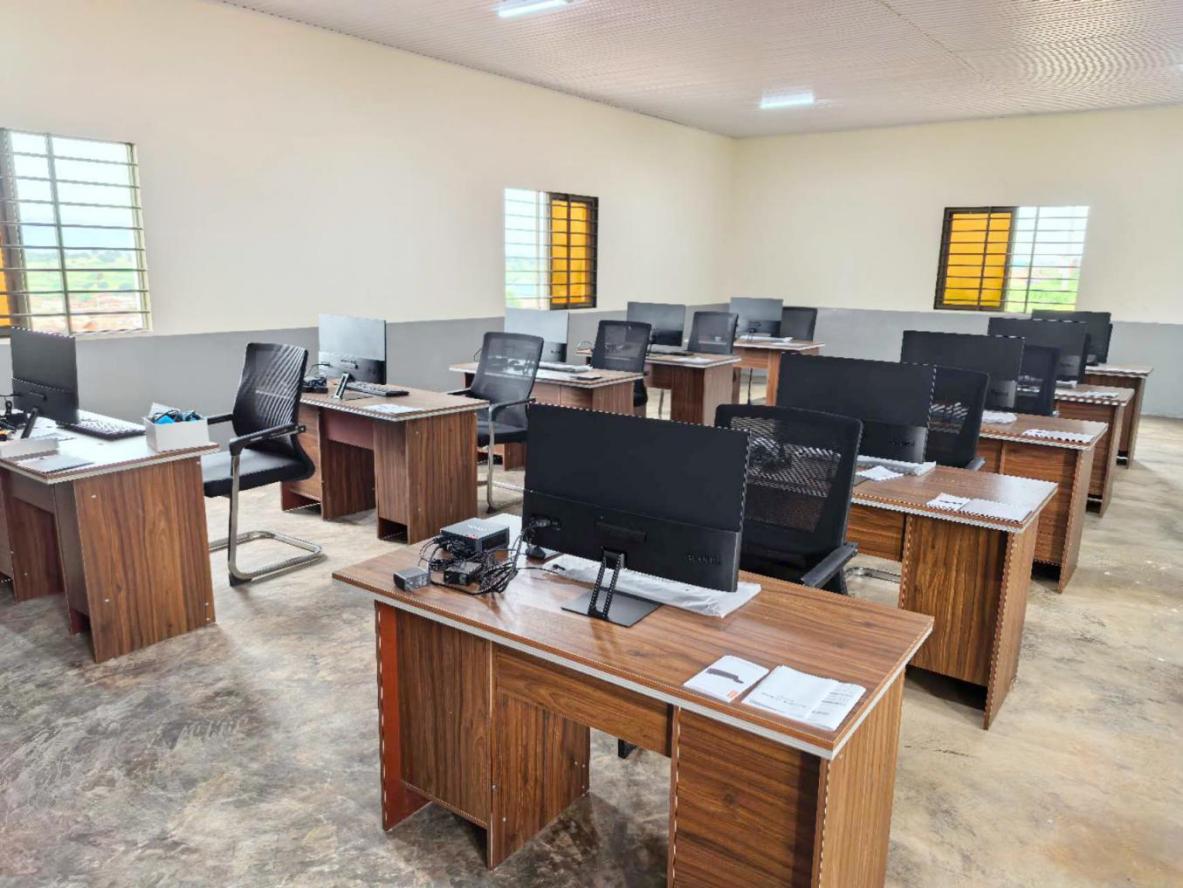 職教中心建筑面積1600㎡,共有教室間6間、辦公室1間、電腦室1間、門衛(wèi)房1間,教室配有臺式電腦、筆記本電腦、縫紉機(jī)、講課桌等,并配有教師辦公室、會議室、標(biāo)準(zhǔn)廁所、水井、操場等全套設(shè)施。