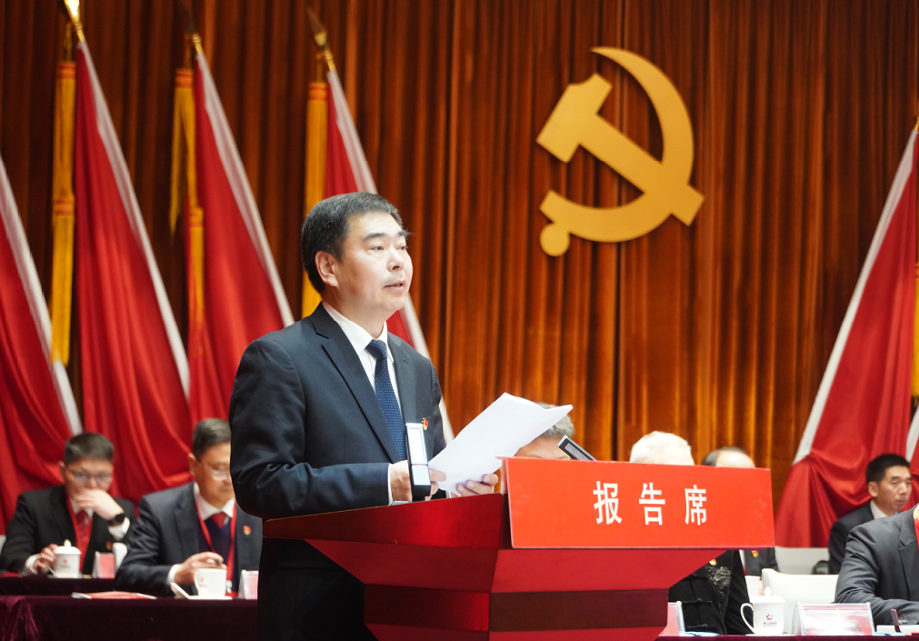 公司黨委書記、董事長胡國斌代表公司黨委作題為《堅(jiān)持長期主義? 聚焦兩端發(fā)力? 為建設(shè)“優(yōu)高美強(qiáng)好”新有色團(tuán)結(jié)奮斗》的工作報(bào)告。