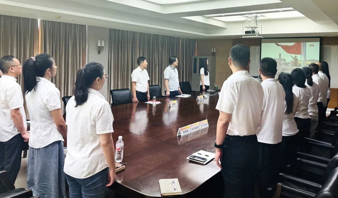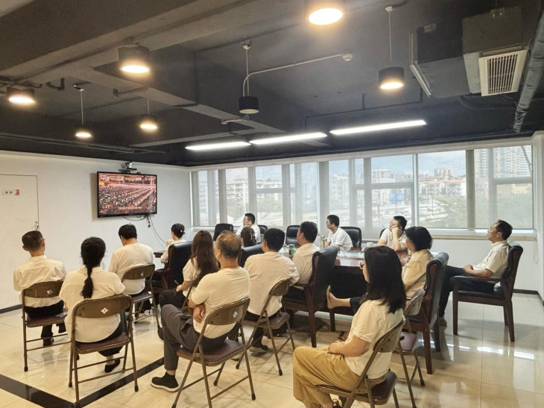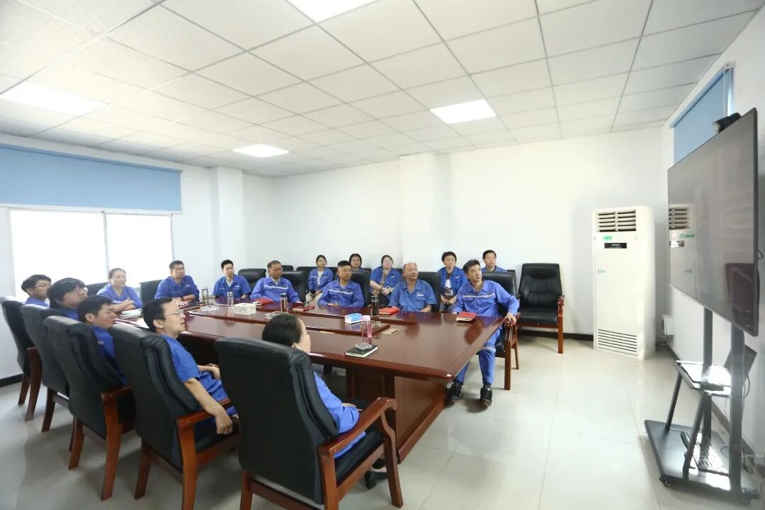 公司領(lǐng)導(dǎo)及相關(guān)部室人員在總部觀看直播